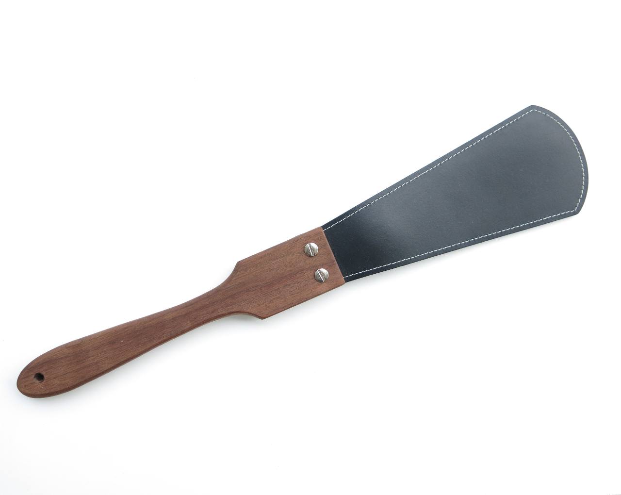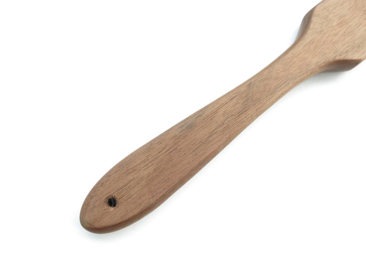 This paddle is made for a good quality spanking, while the ergonimical design provides a comfortable fit in the wrist. Handcrafted and made with Canadian walnut wood, this surely a unique piece for your kit.
