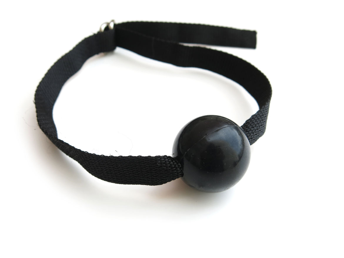 Silicone ball gag with solid silicone ball. The soft webbing straps grab easily to the hair for a strong grip and the D-ring closure gives you a perfectly tight fit. Black ball is 3.5cm in diameter, slightly smaller than industry standard, allowing for these restraints to be used for a longer time with less tension on the jaw.