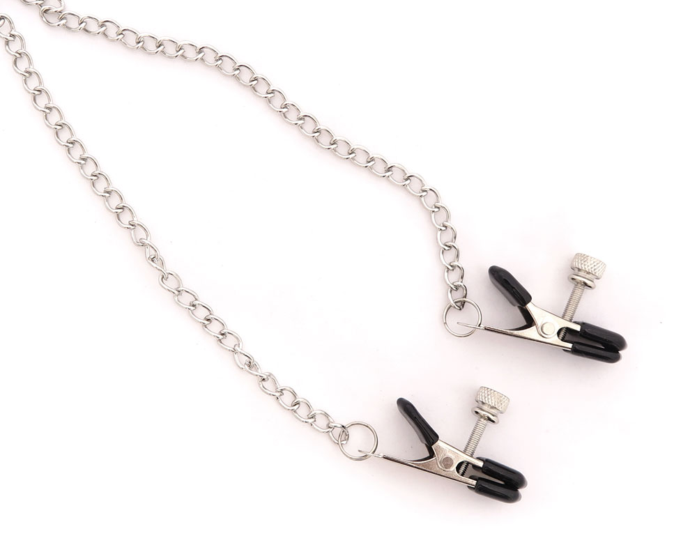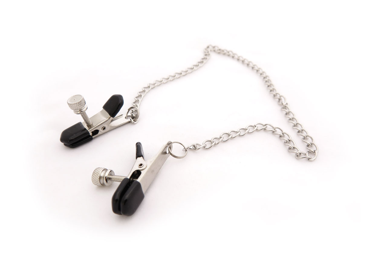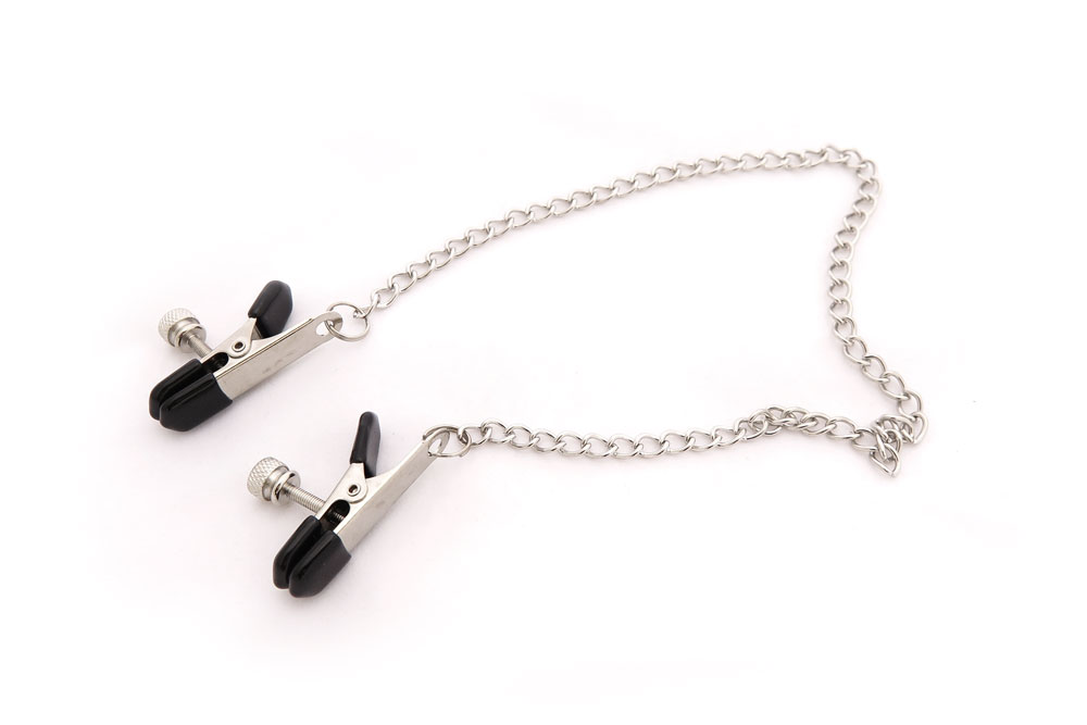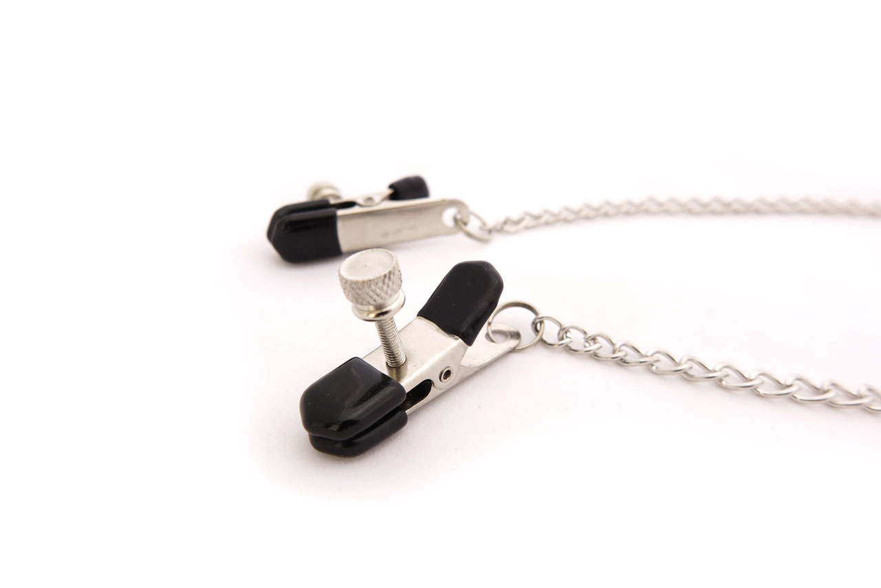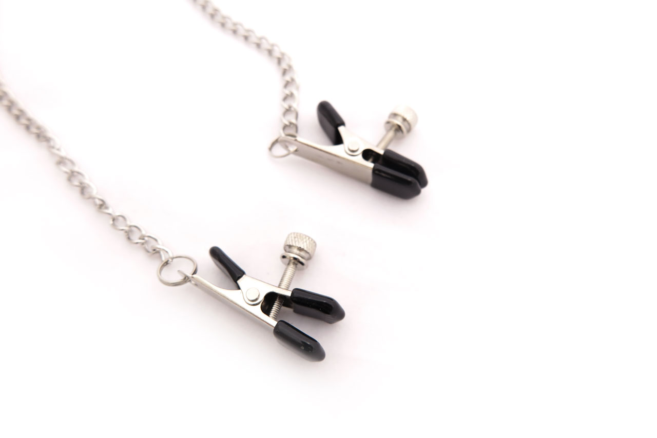 Our bull nose nipple clamps have a flat, rather than pointed, rubber tip to clamp the nipples. They offer more surface area to grab the nipple while still being a small and delicate piece. Add a chain for a beautiful adornment between the breasts and belly and this piece becomes one of our favourite nipples clamps in our series.