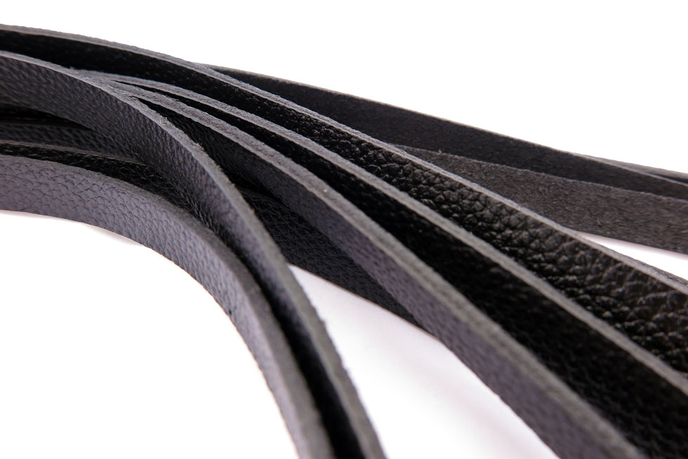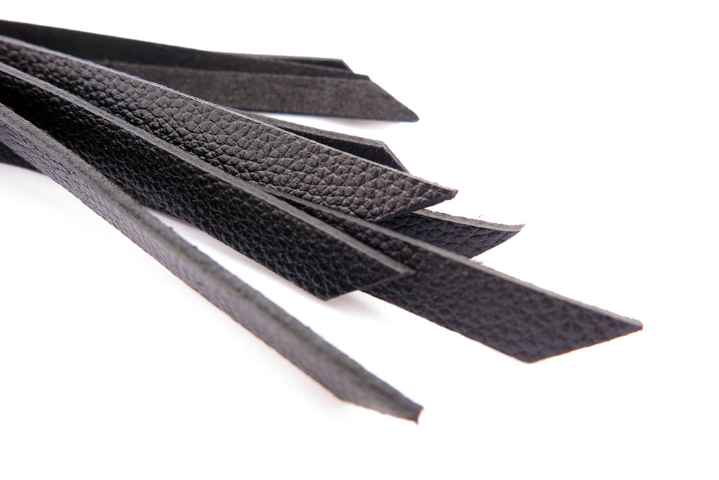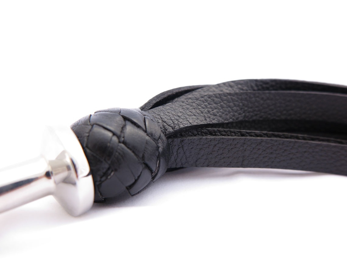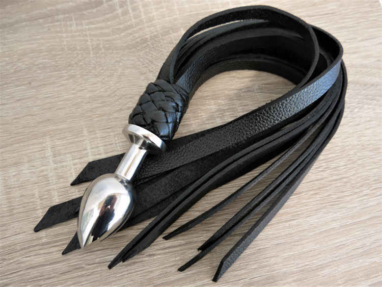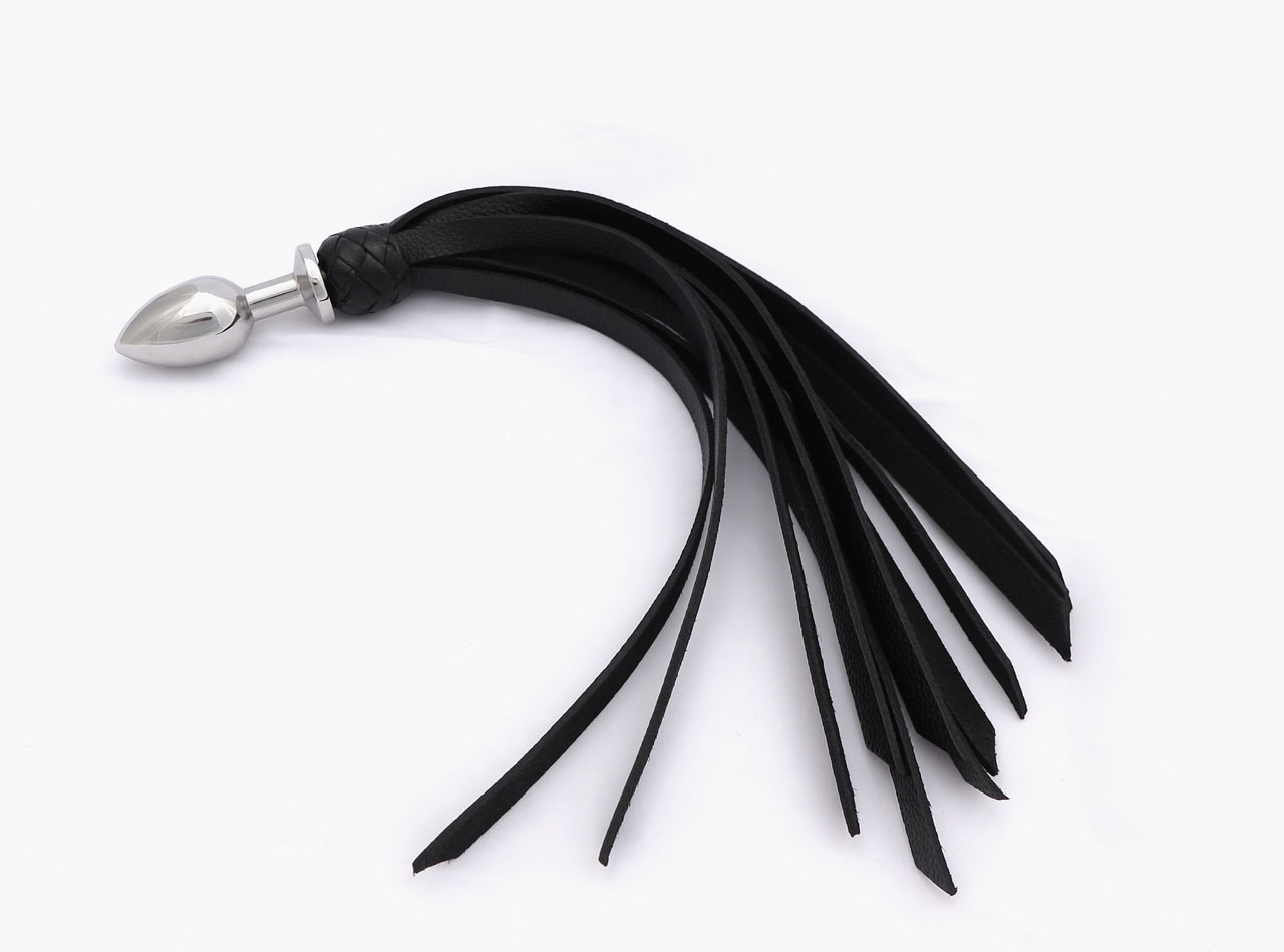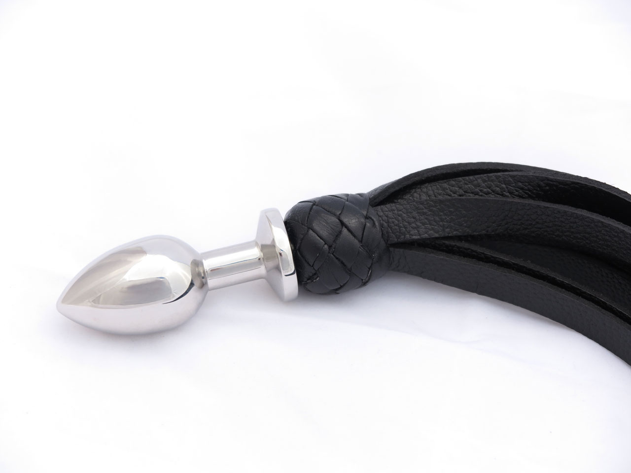 This butt plug flogger has a heavy weight metal plug with leather flogger tails.