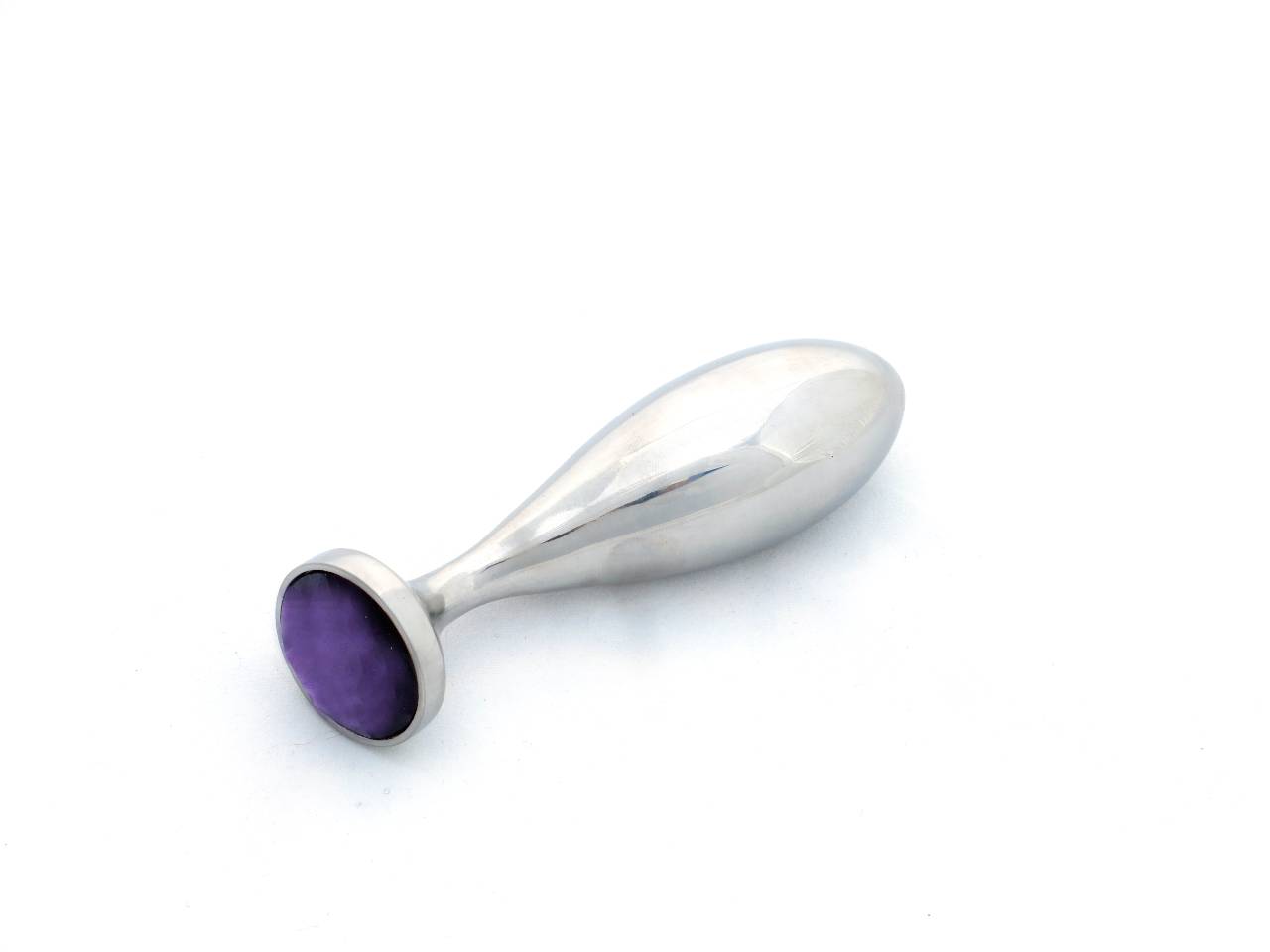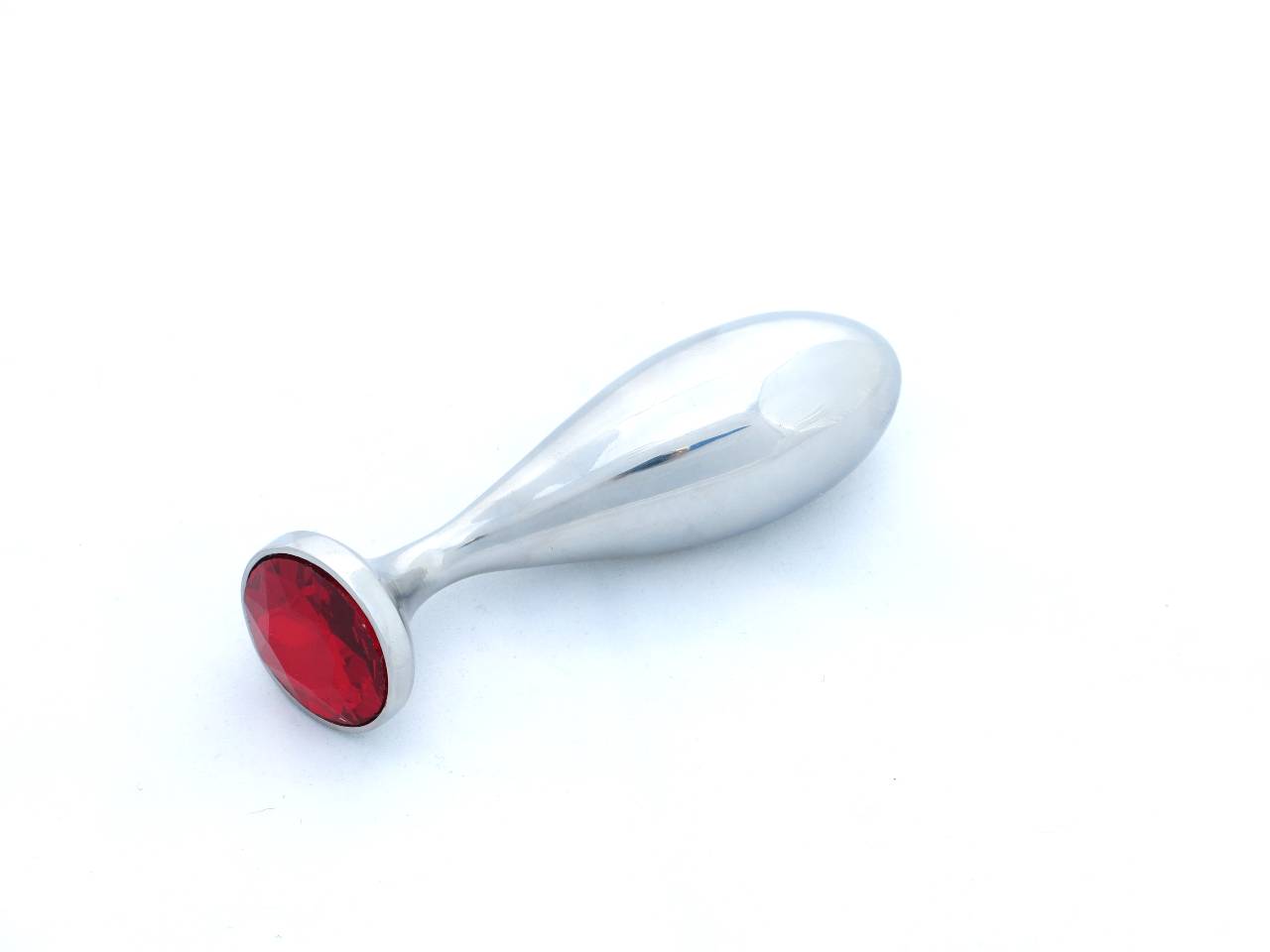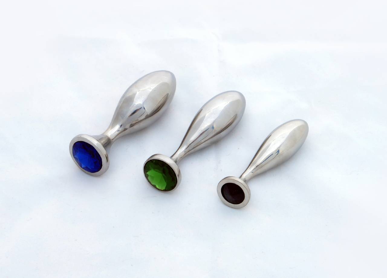 The small size of our curved anal plug has a steel edging around the gem (as seen in the picture displaying the pink gem). Medium and large sizes have a slightly larger gem that touches the edge of the plug. Gem comes in your choice of color, including clear, blue, green, pink, purple, red and black. Gems are glued by ourselves with a high quality silicone-based and temperature resistant glue.