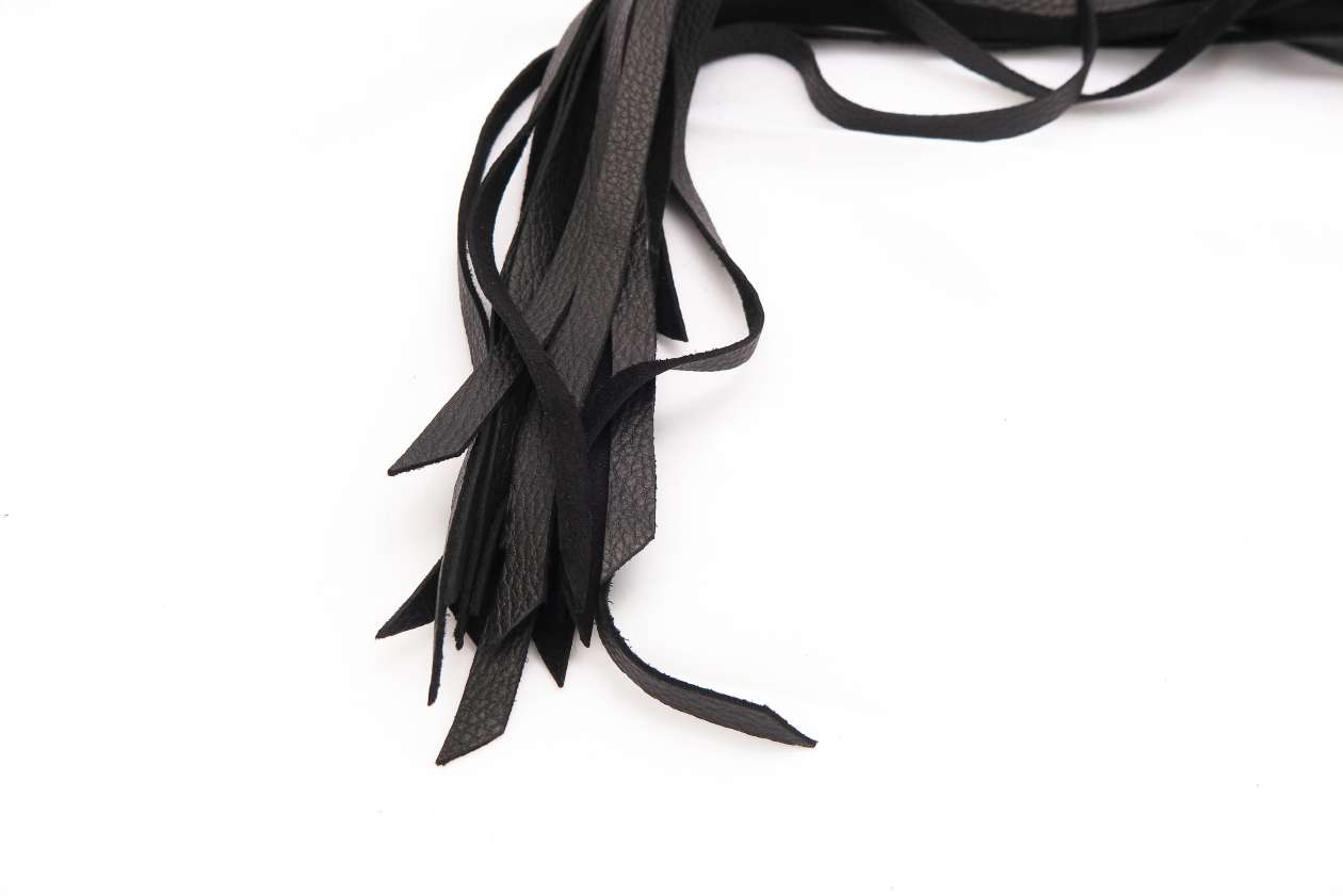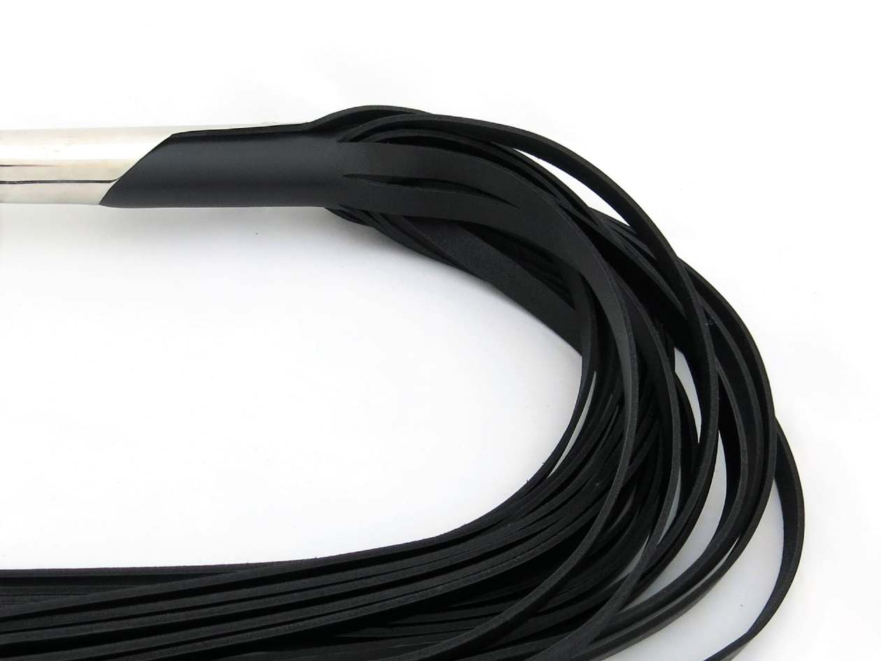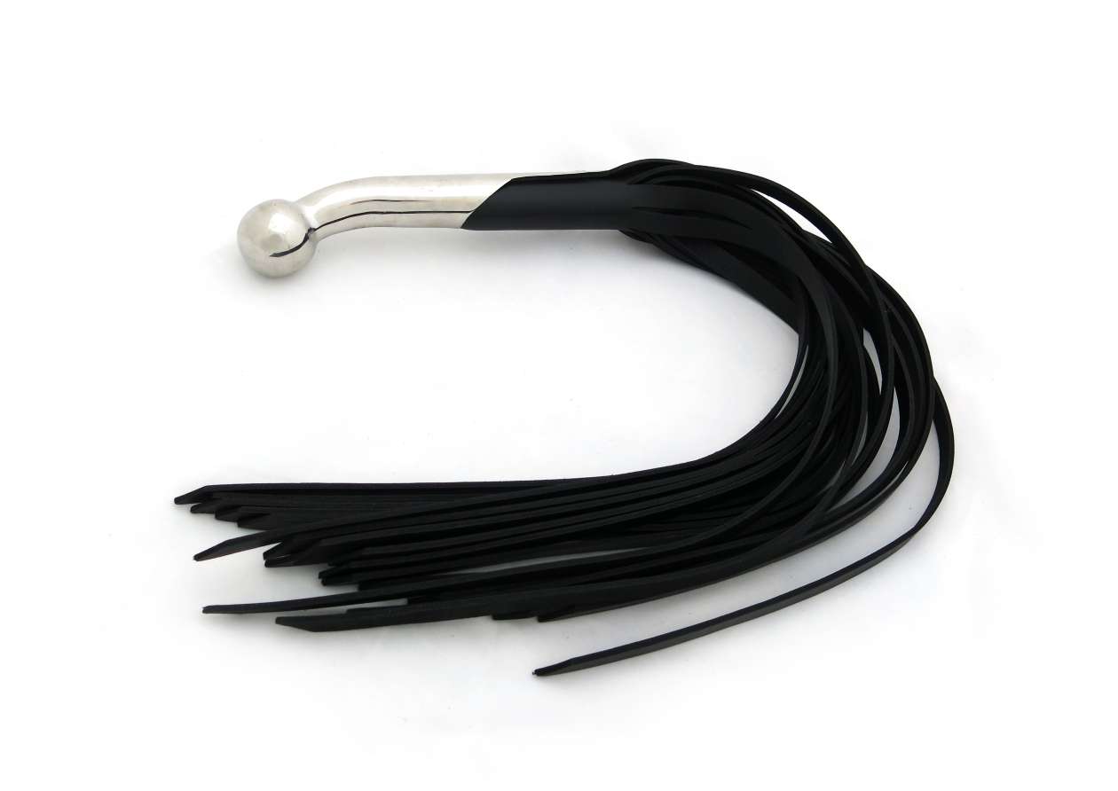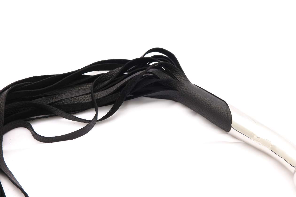 Professional cow leather flogger with stainless steel handle. This piece is for the advanced players, with 20 leather tails for heavy weight and maximum impact. The handle is made of body safe stainless steel, therefore can easily double as a dildo. With the heavy weight and durability of cow leather, is a serious flogger for those with intense fetishes who prefer to play in style.