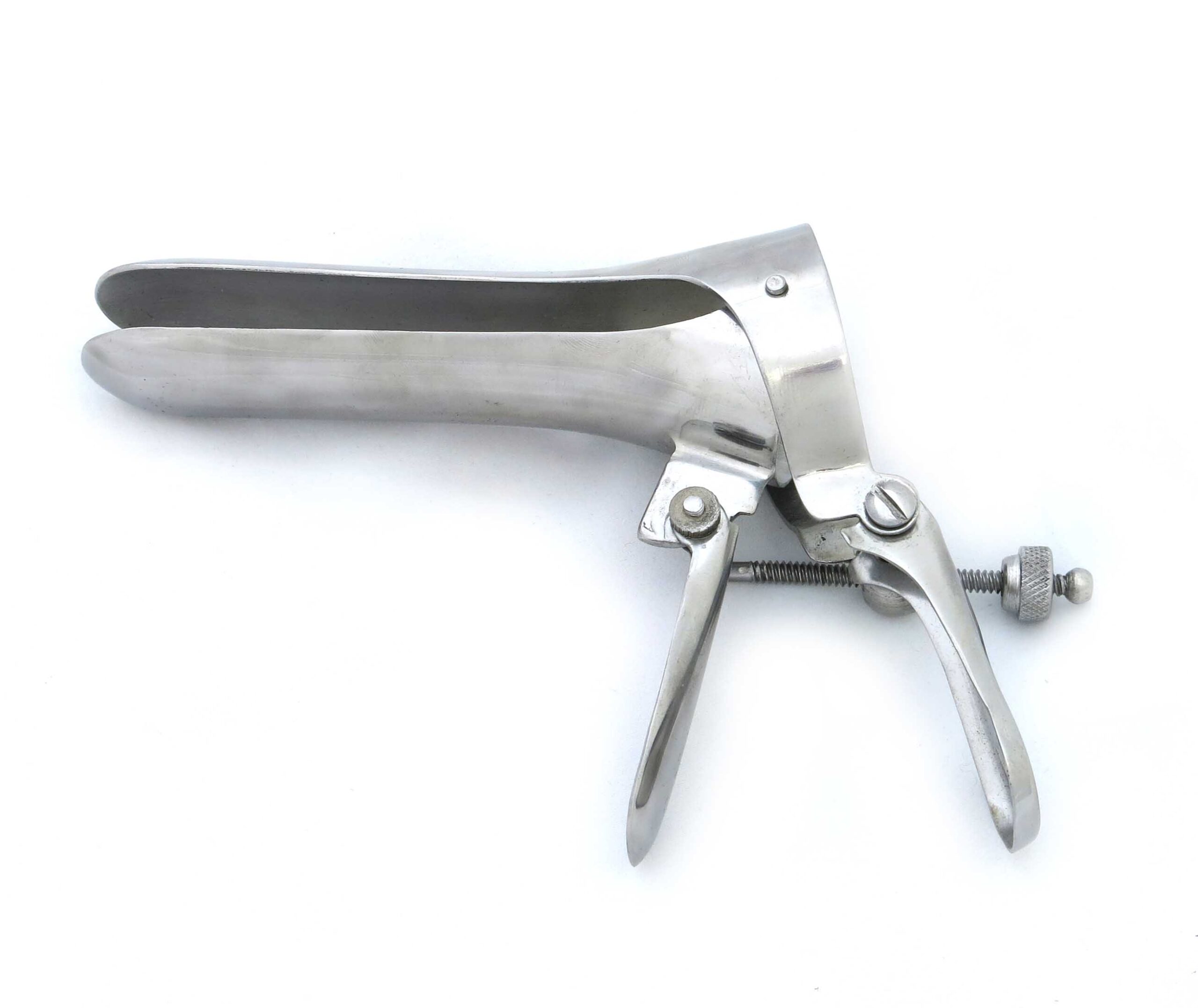 Solid stainless steel speculum. For female submission of the vaginal opening.