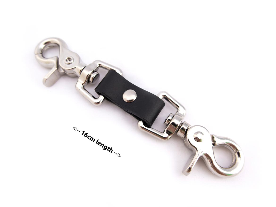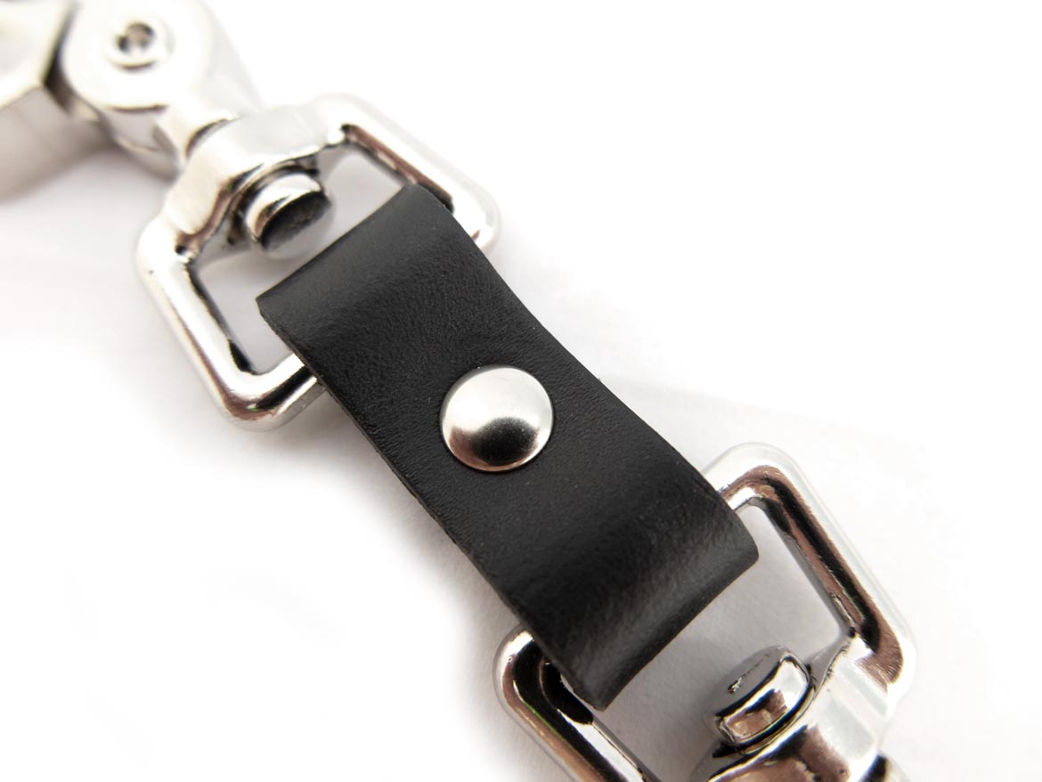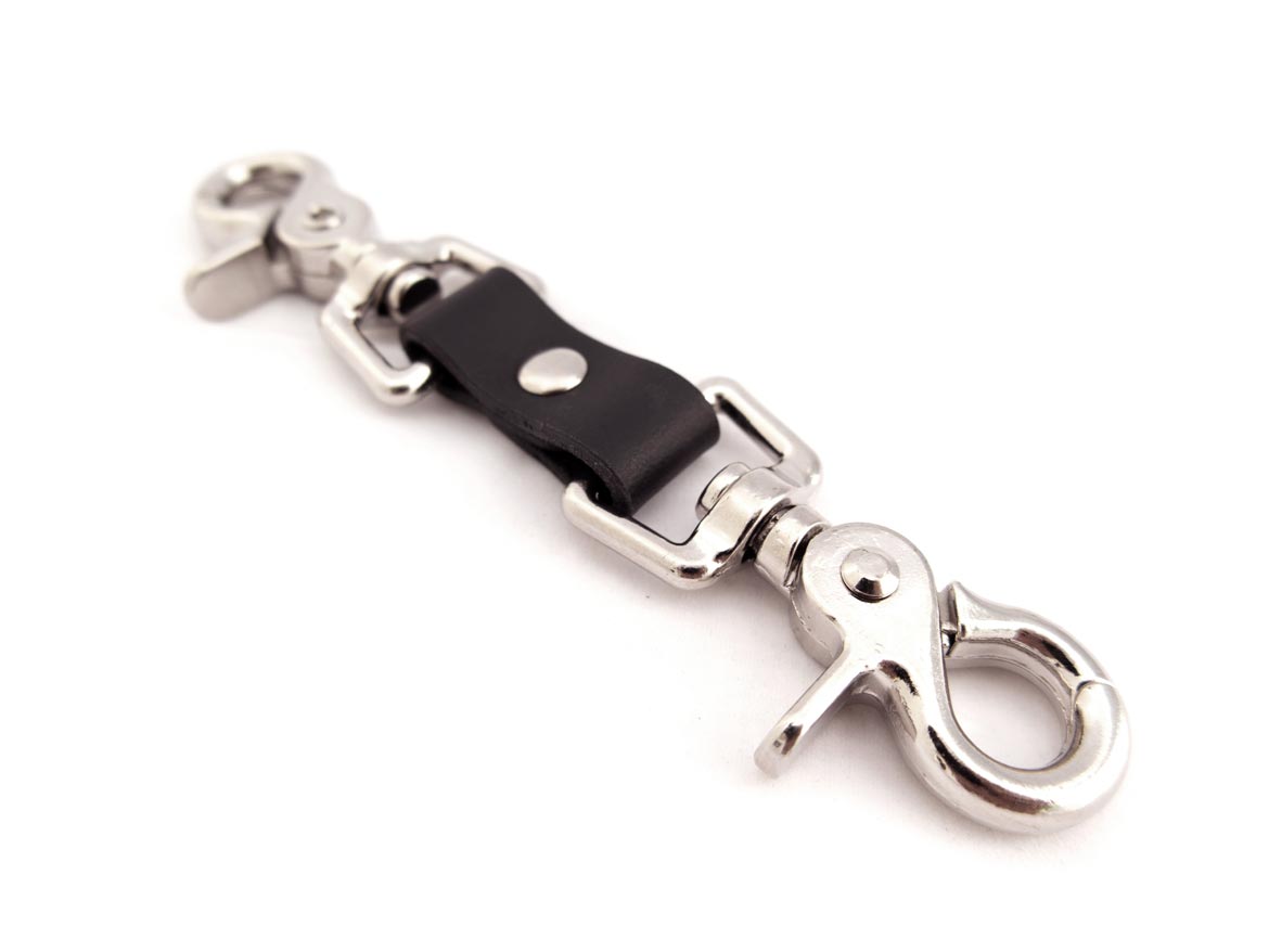 The double ended connector offers an extended length to attach between any set of bondage cuffs. Two quick release trigger snaps make is easy to lock and unlock your partner without hassle – and without loosing the heat. A must for any bondage set.