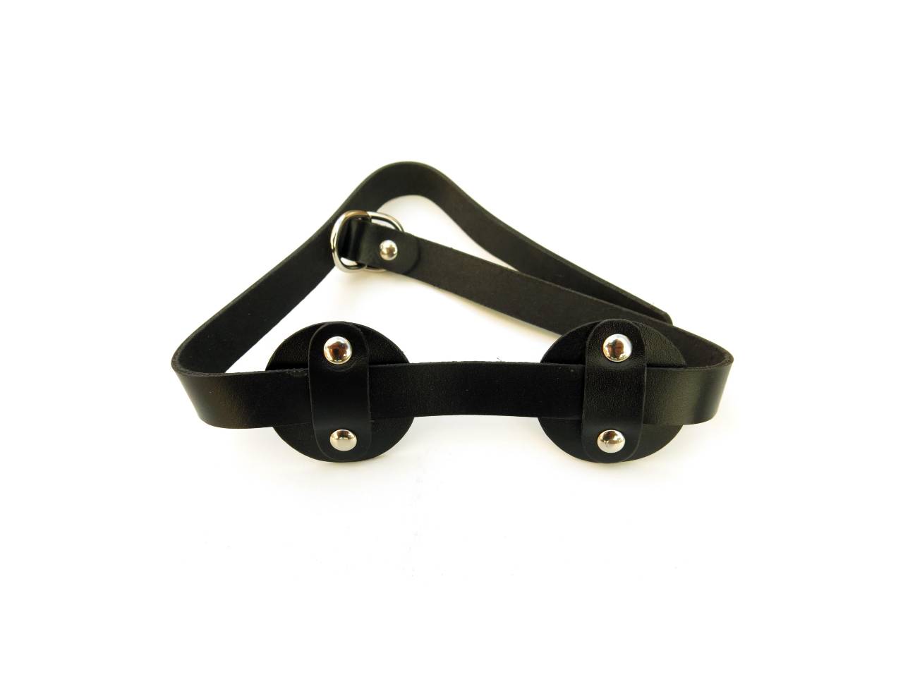 This adjustable blindfold for bondage and submission guarantees no light to enter or possibility of peeking. With a double D-ring closure at the back and movable eye patches, this eye mask is fully adjustable to fit any sub. Soft and supple leather keeps this piece comfortable while being worn for long periods of time and gives a beautiful aestethic.