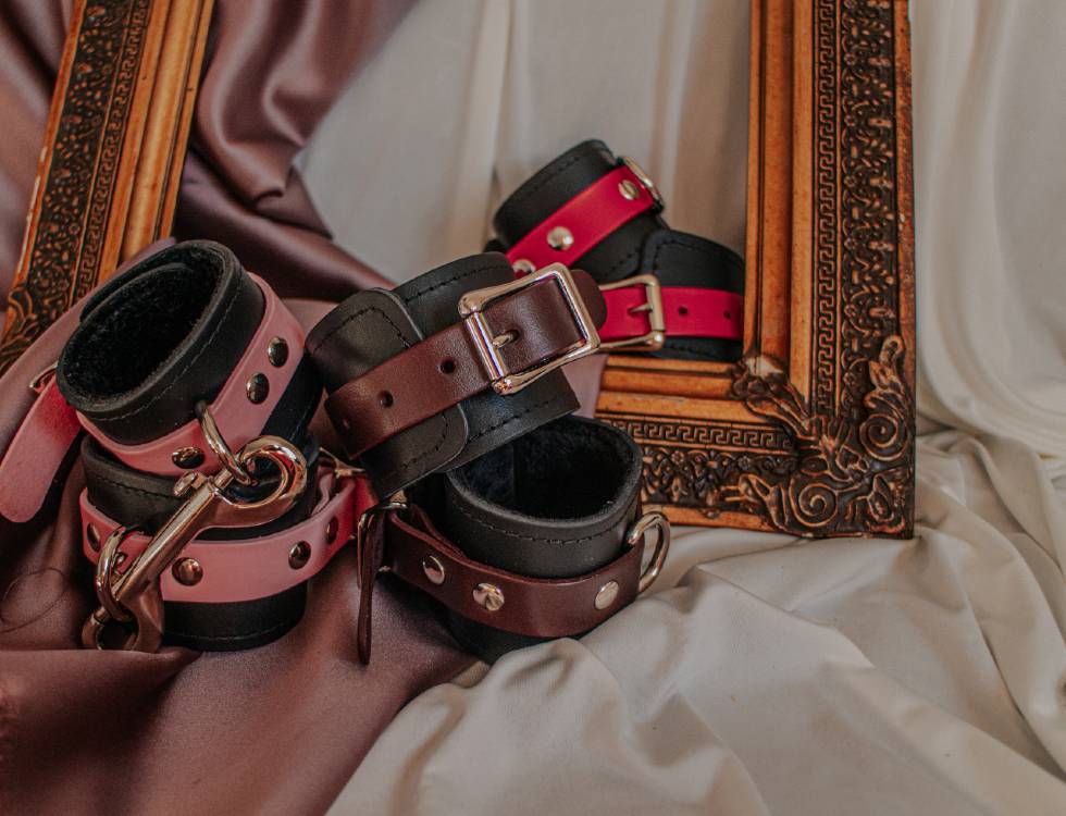 • Leather cuffs for wrists or ankles.