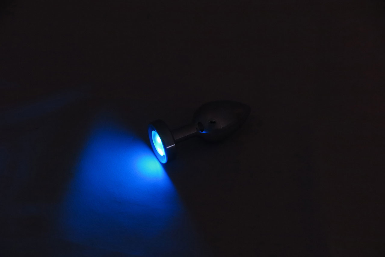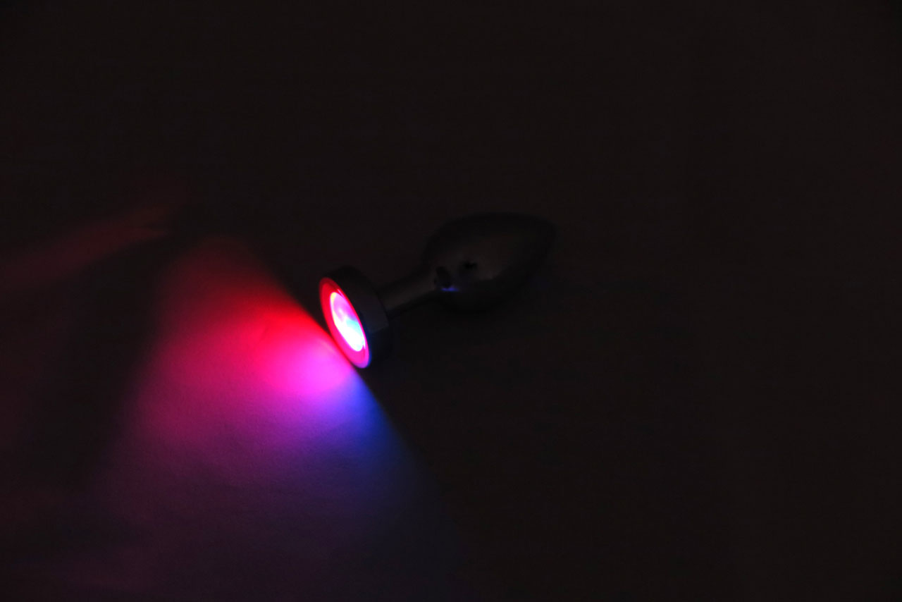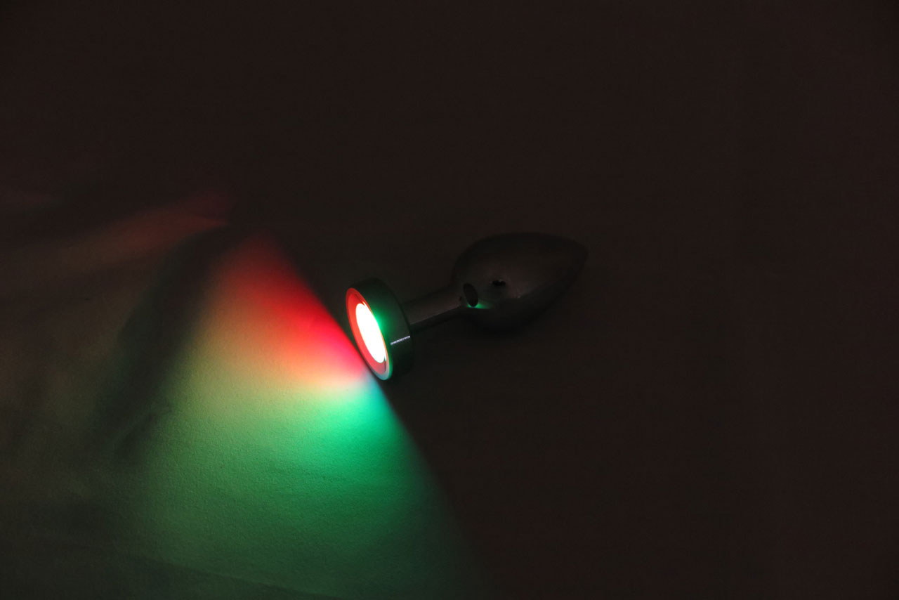 This LED butt plug has three colours – red, blue and green – with three different modes or combinations of flashing display. Modes are changed by pressing the white button at the end of the plug where the lights are displayed. LED battery is included and can be easily replaced when needed. Aluminum plug is body safe.