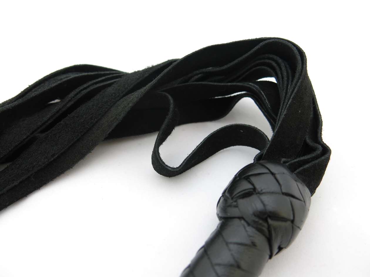 Small flogger with suede tails and leather handle for light impact, beginners or discreet play. Suede tails and a braided leather handle give this seemingly light piece much more class than your average beginner flogger.