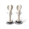 Our twist up nipple suckers are a fool proof way to add heightened sensitivity and stimulation to your sex play. Simply place on top of each nipple then gently twist the opposite end to create a slow and comfortable suction. If the piece becomes dry around the part that touches the skin, you can relubricate with any lube. They are safe to leave or they can be removed after suction to allow sensational bliss at the slightest touch. These are great nipple toy for those starting out to nipple play, as they are gentler than clamps yet greatly increase sensitivity.