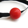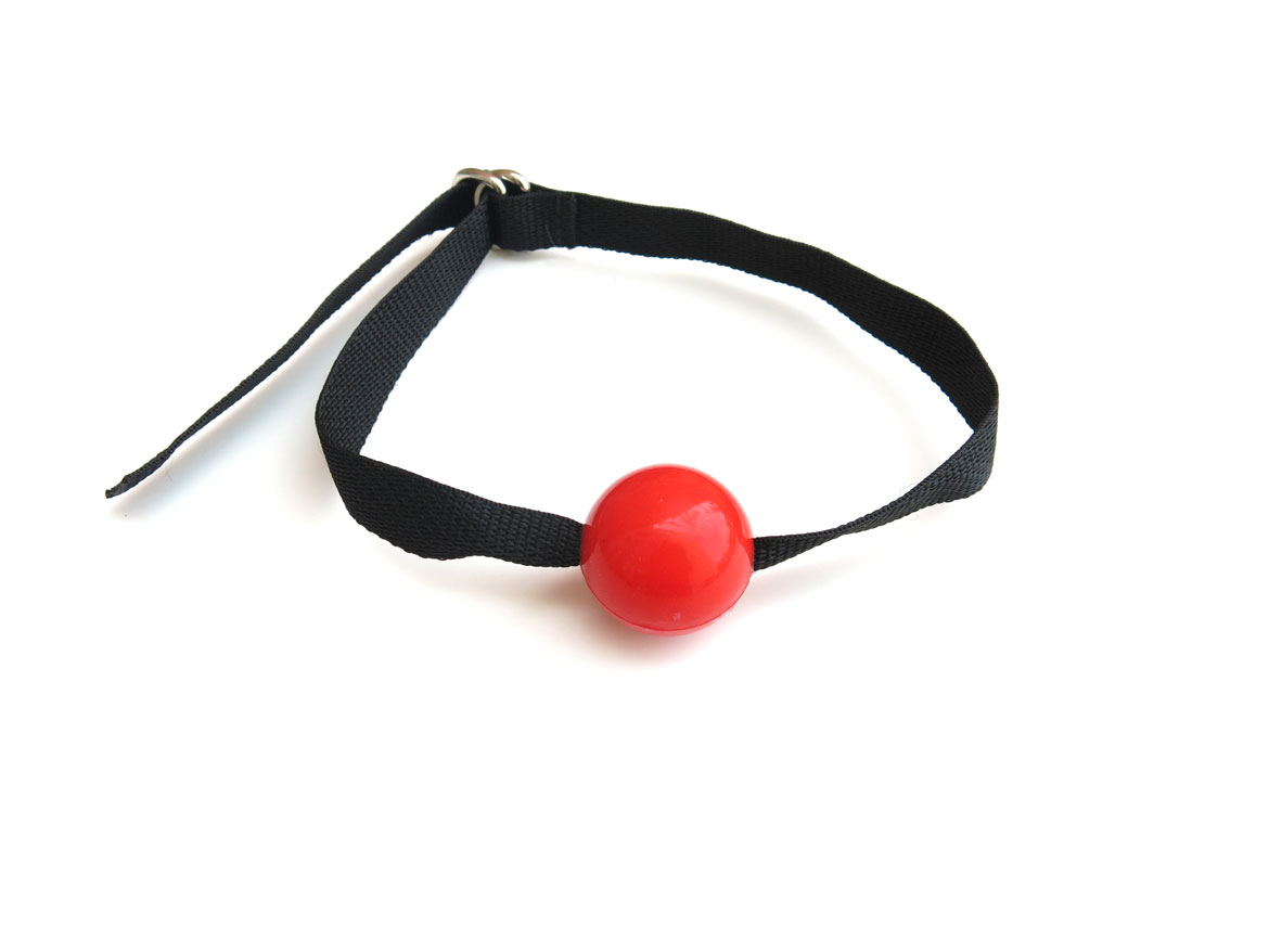 Silicone ball gag with solid silicone ball. The soft webbing straps grab easily to the hair for a strong grip and the D-ring closure gives you a perfectly tight fit. Red ball is 3.5cm in diameter, slightly smaller than industry standard, allowing for these restraints to be used for a longer time with less tension on the jaw.