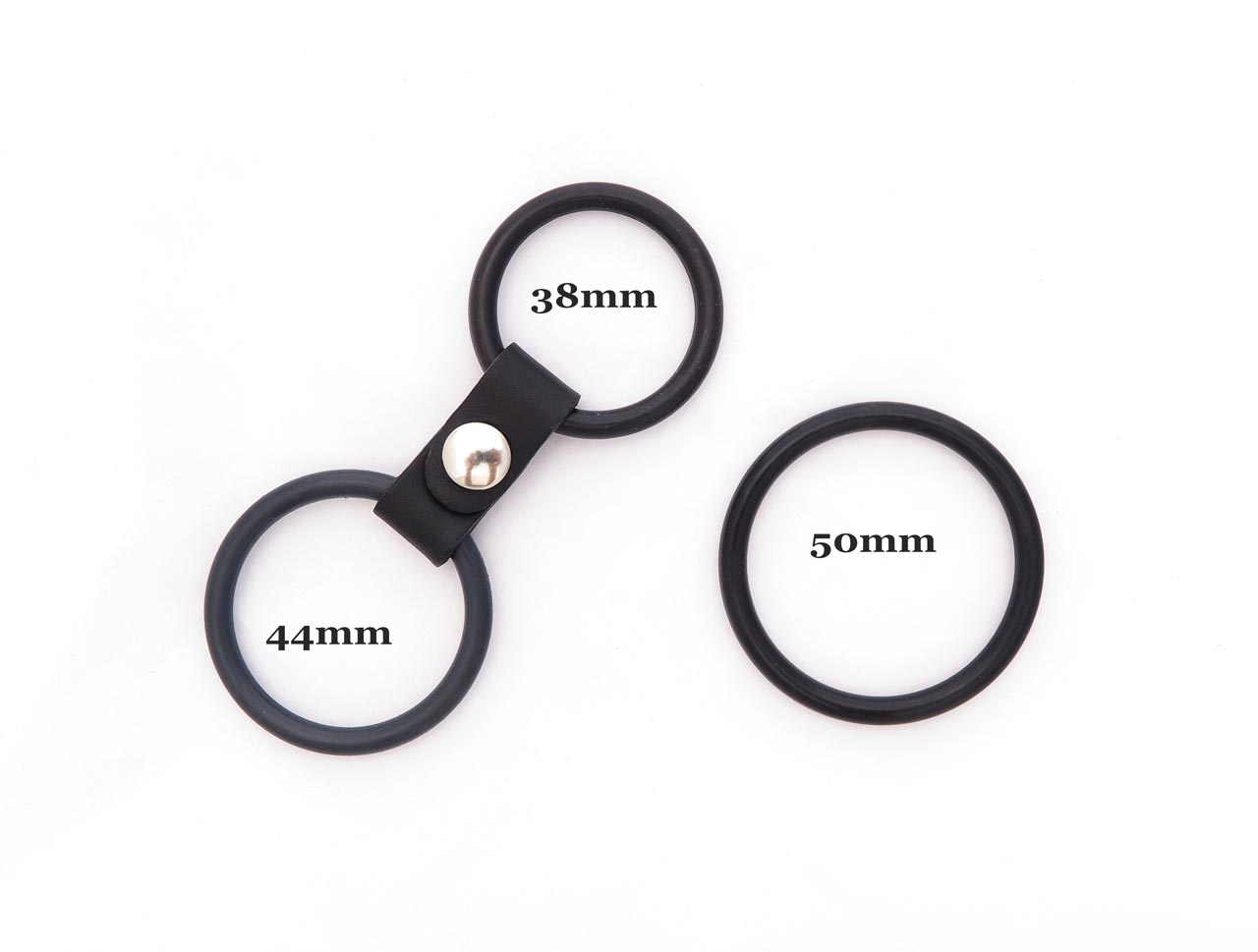 Internal diameter of each ring: 38mm, 44mm and 50mm.