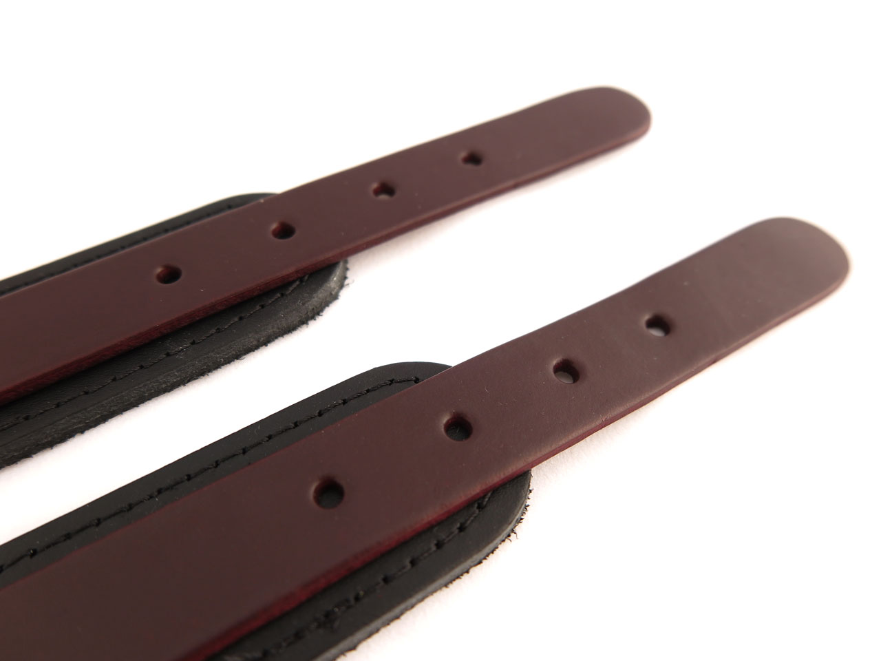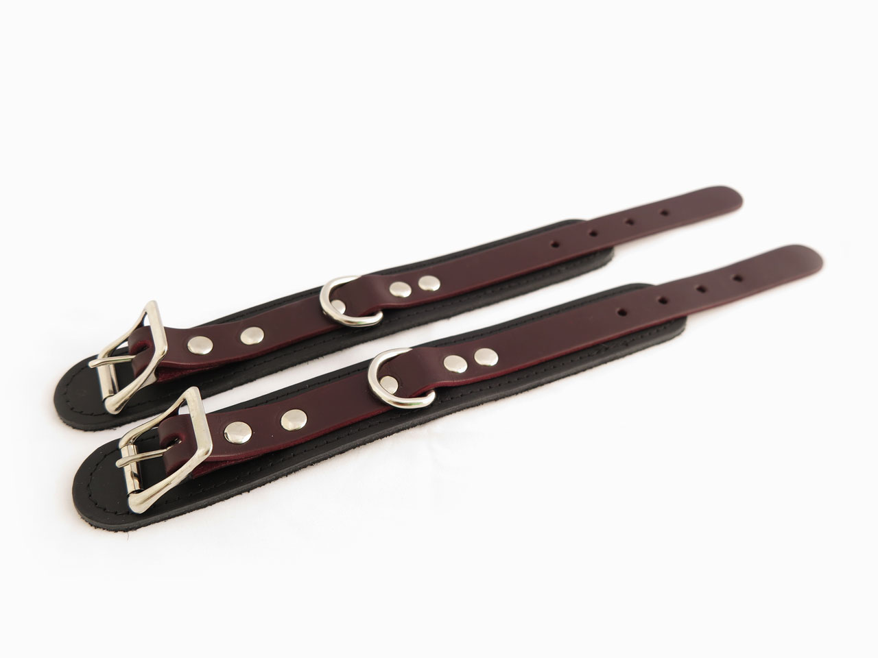 With their 3cm width, our mini leather BDSM cuffs offer a unique slender style to your leather cuff collection. Made with two layers of soft and supple leather, they are easy to buckle without any hassle. Their flexibility fits smoothy with the contours of the body so that they feel like a sexy second skiny. The suede interior and stitched edges give extra comfort and a sophisticaed look and feel.