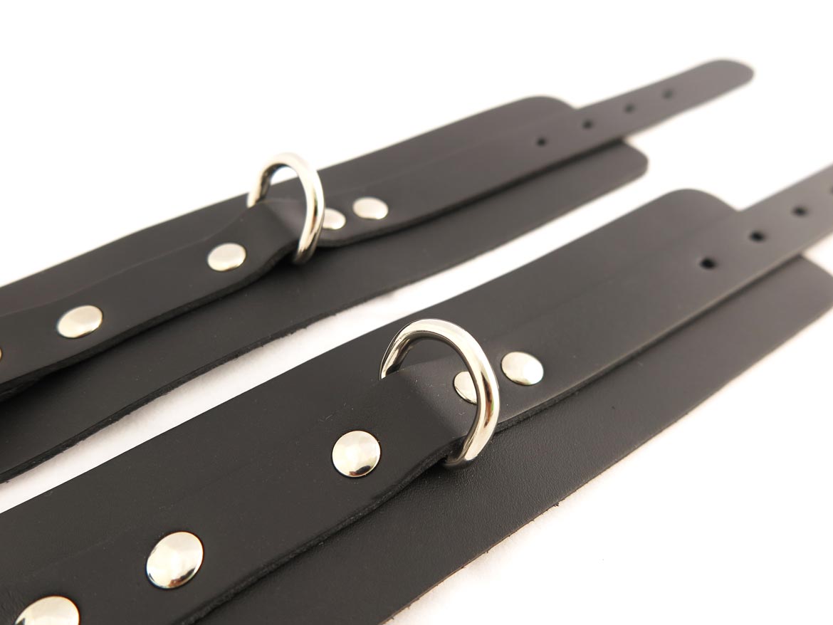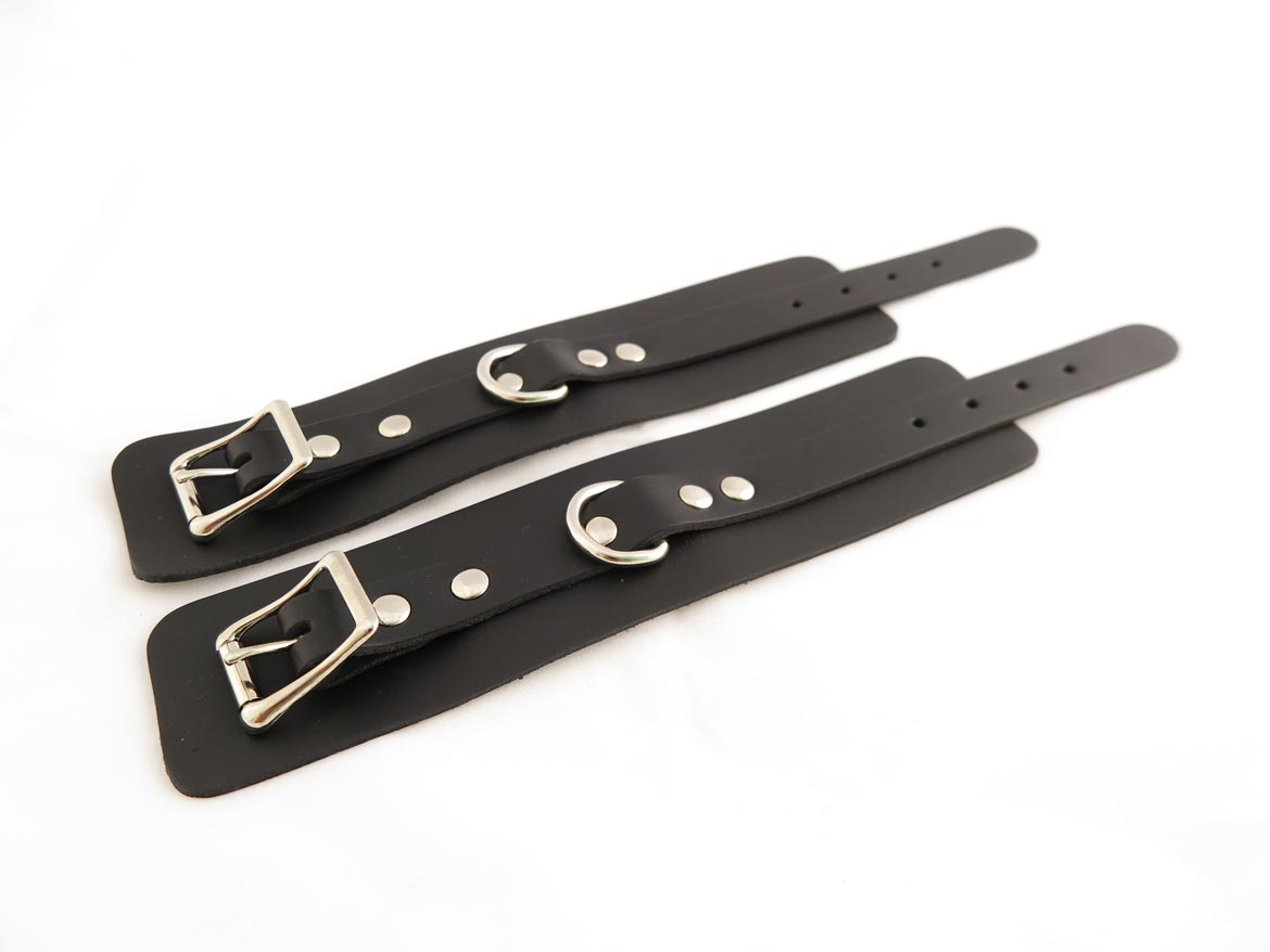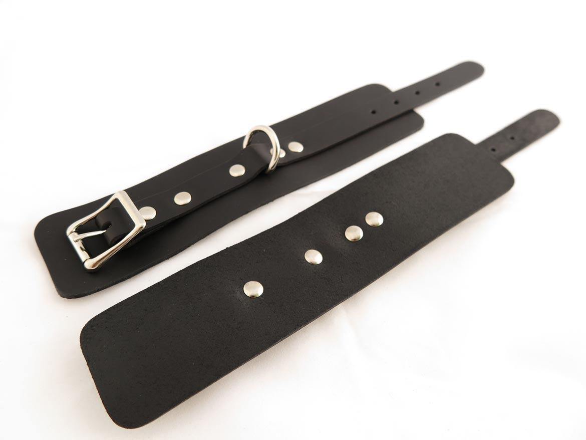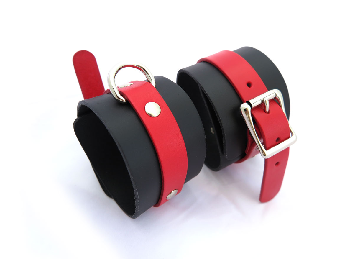 Our classic leather cuffs provide a strong hold for any sub. With the strength of leather, 5cm width and quality hardware, these restraints will keep a tight and snug fit while offering flexiblility around the wrists and ankles. Roller buckle protects the leather over time. Multiple colours are available for the outer band, while the inner band remains in black for a beautiful contrast.