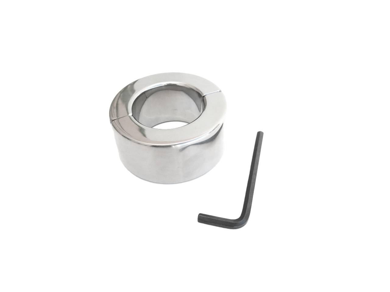 This metal ball stretcher is made of 100% percent solid stainles steel. It has an extra long height of about 28mm and a heavy weight of 440g and allen key lock. For use around the testicles, this is a heavy duty ball stretcher for the most intense cock and ball torture fetishes.