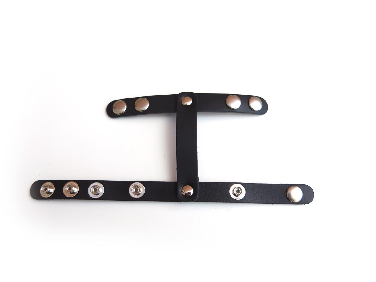 These cock and ball restraints have soft and flexible leather straps with snap adjustments to wrap around the shaft and testicles. A more complete cock ring with adjustable features for a comfortable and snug fit.