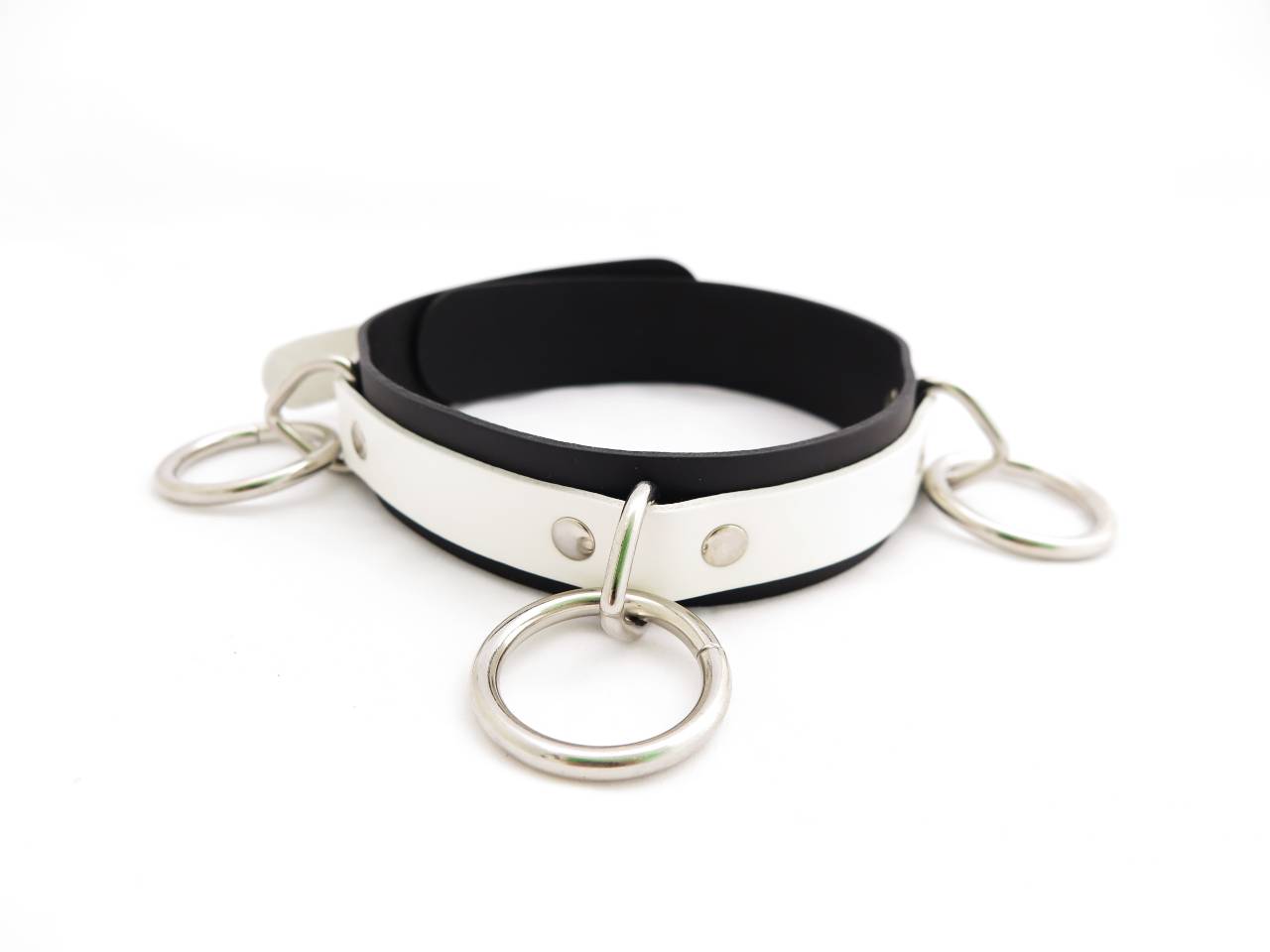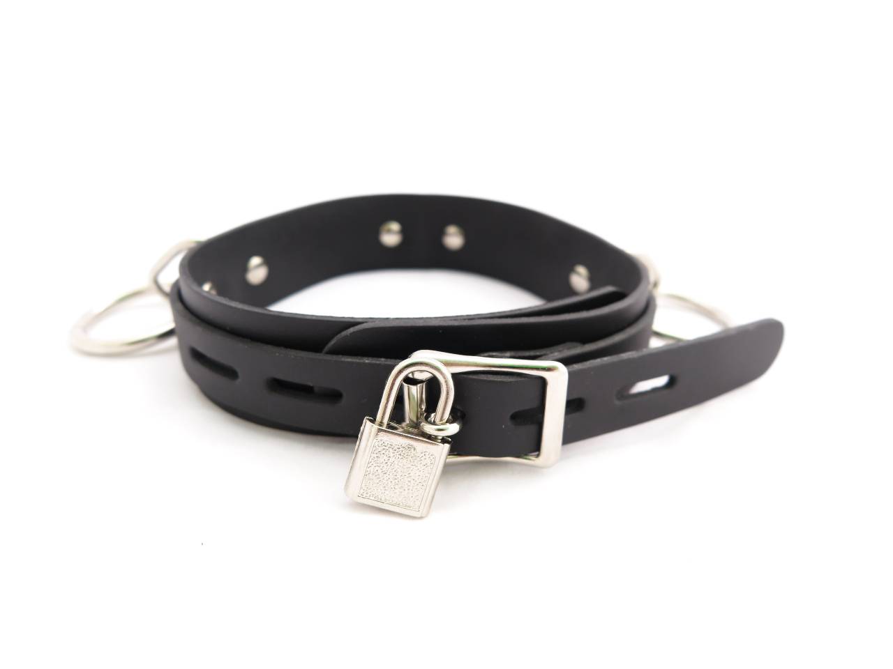 • Three large rings fastened by rivets means more strength and durability for rough tugging and secure bondage.