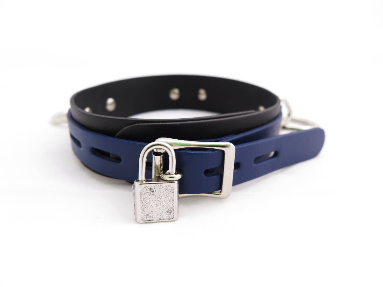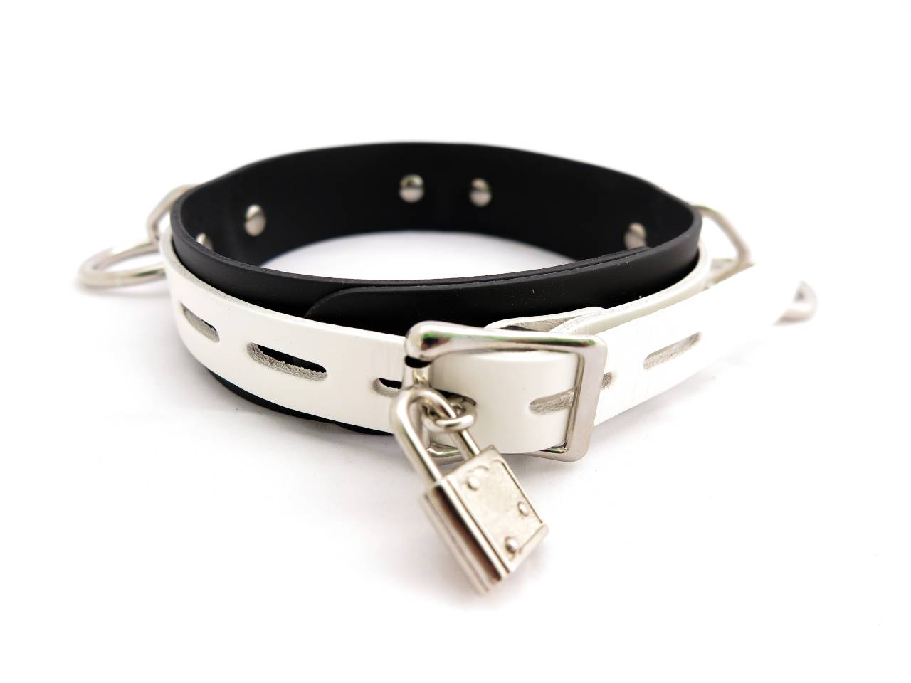 This BDSM locking collar is made with soft, supple and strong leather for proper restraint for your slave. Three large rings give ample possibility to connect, tie and restrain. With a locking buckle at the back and a padlock with two keys included, this collar is ready to use as soon as you receive.