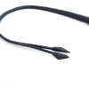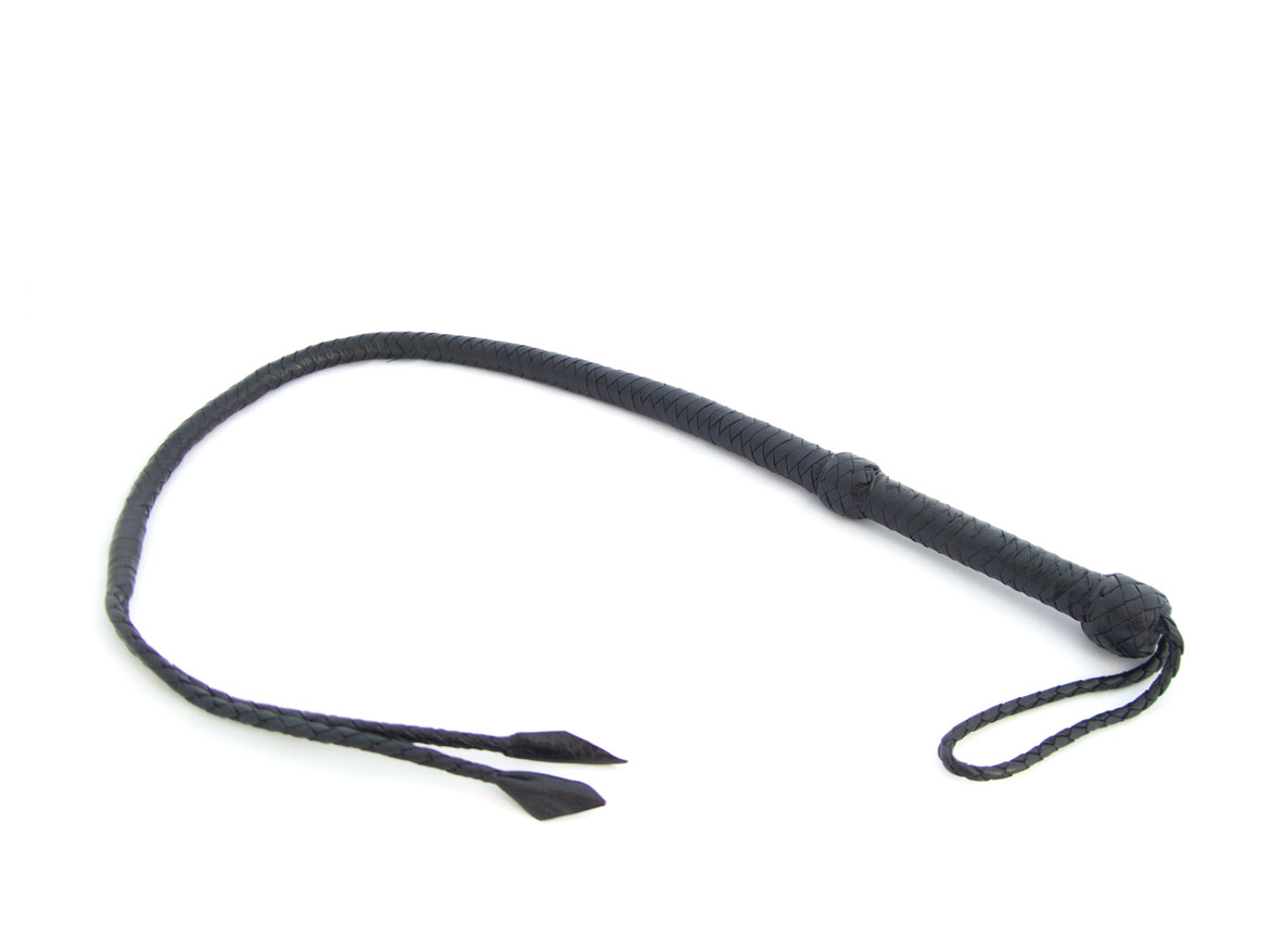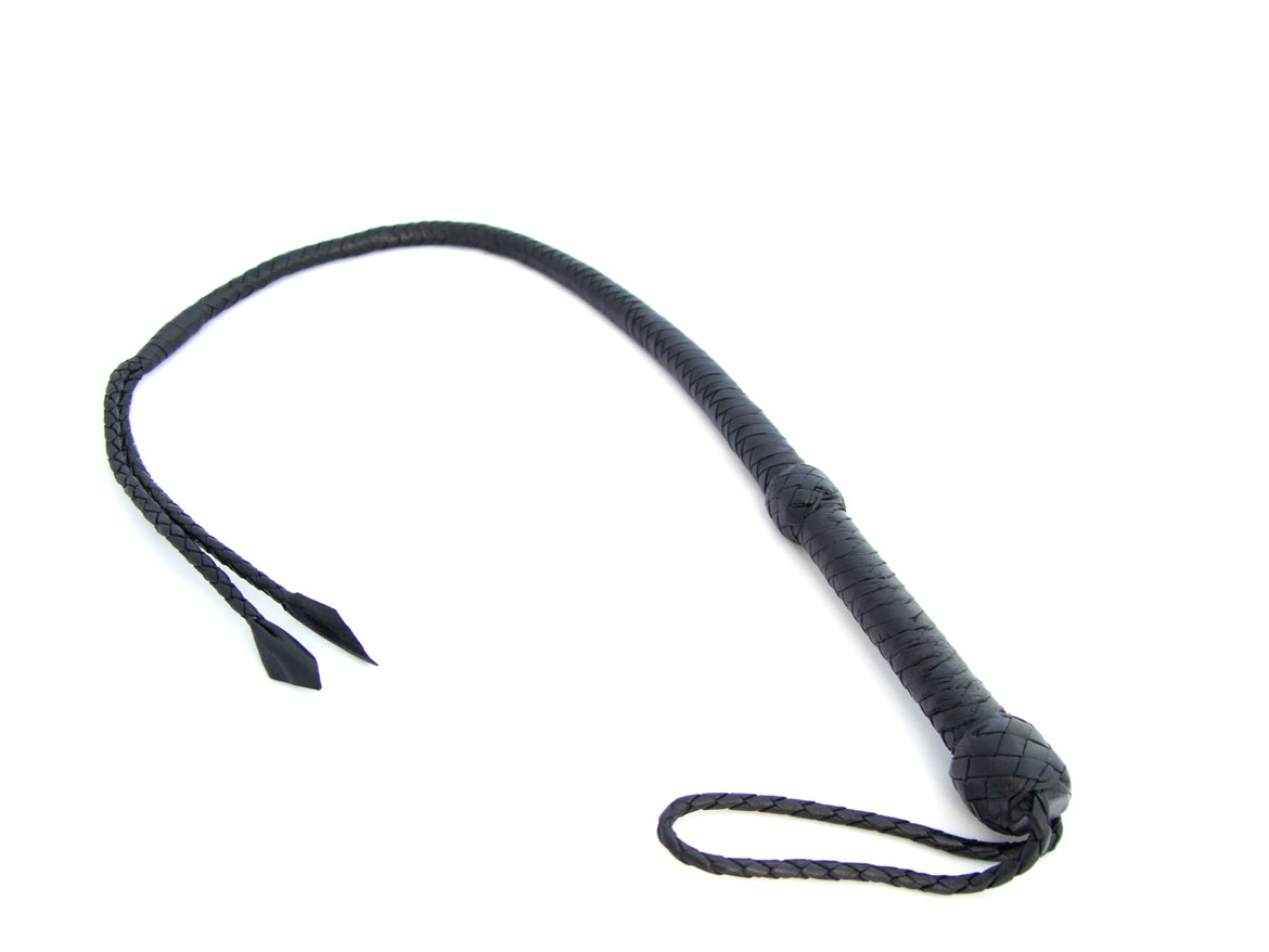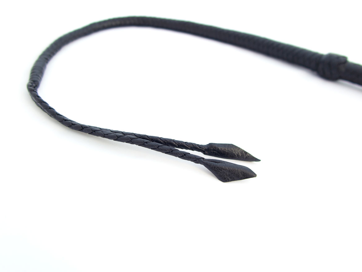 This leather bullwhip has a long length of 92cm, divided in two whips at the tip. Braided leather runs from a thick and balanced handle. Professionally made for the esquestrian centers, this bullwhip makes the transition to high quality BDSM play.