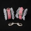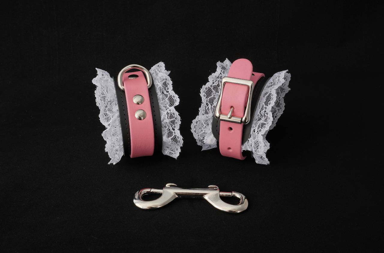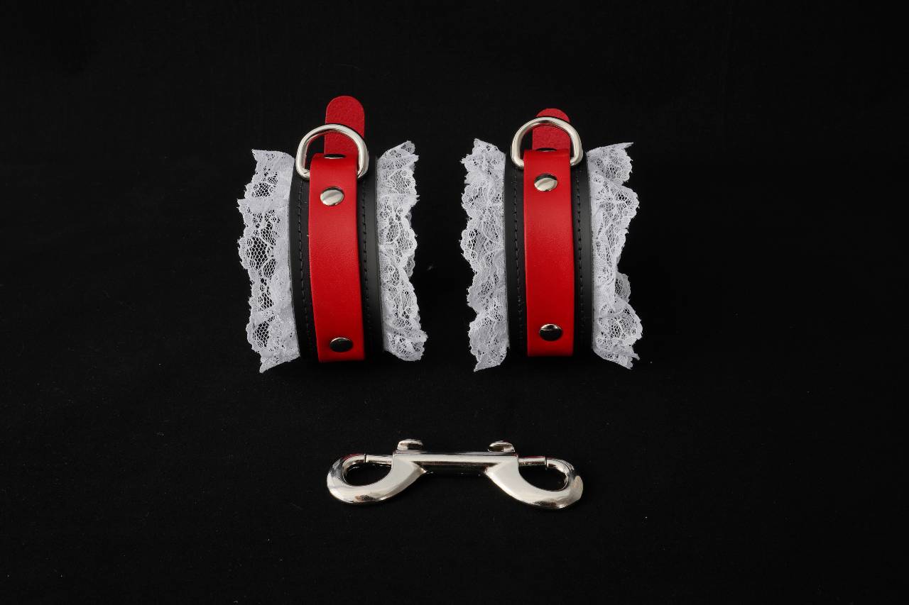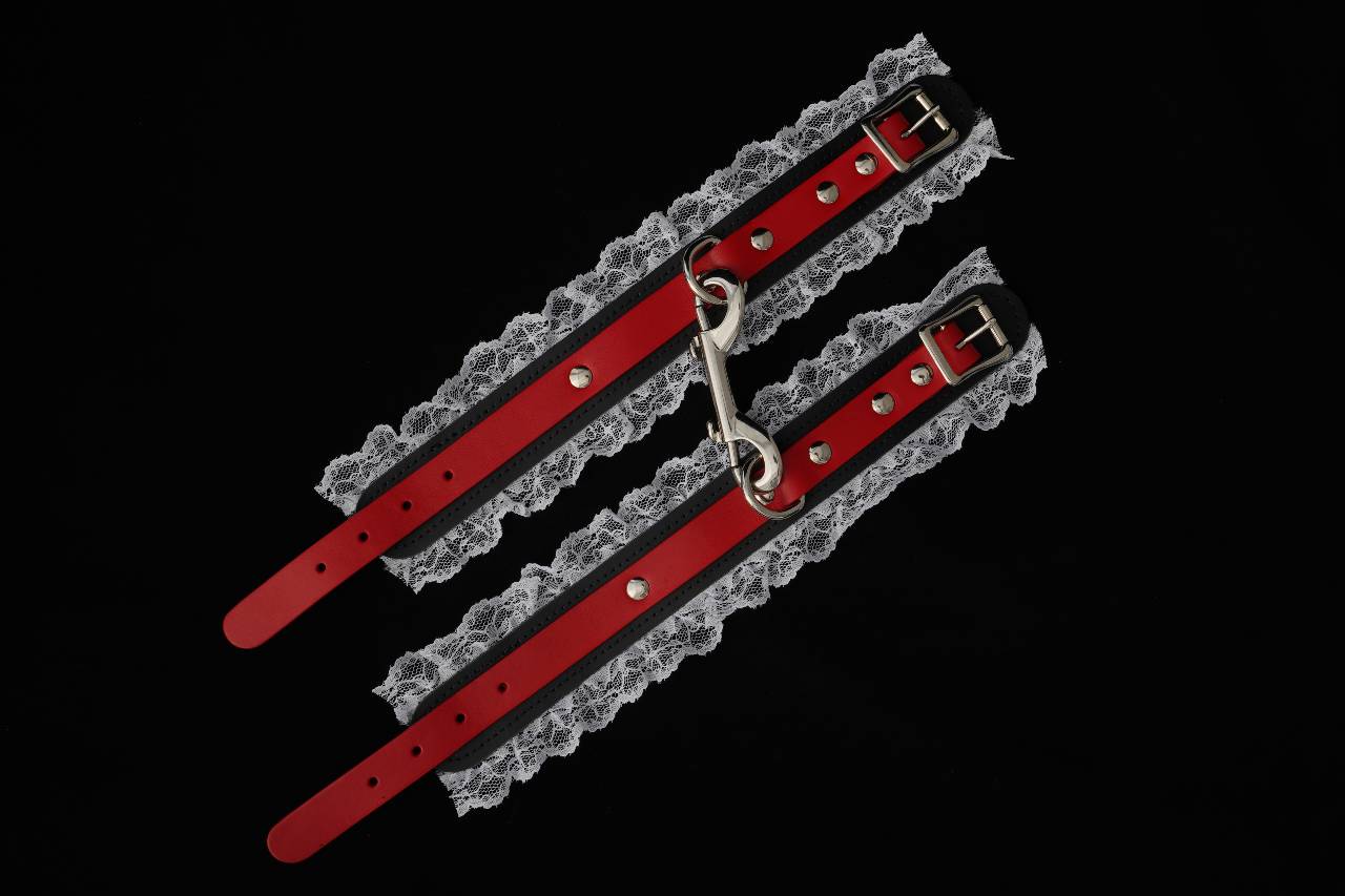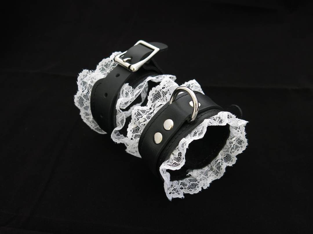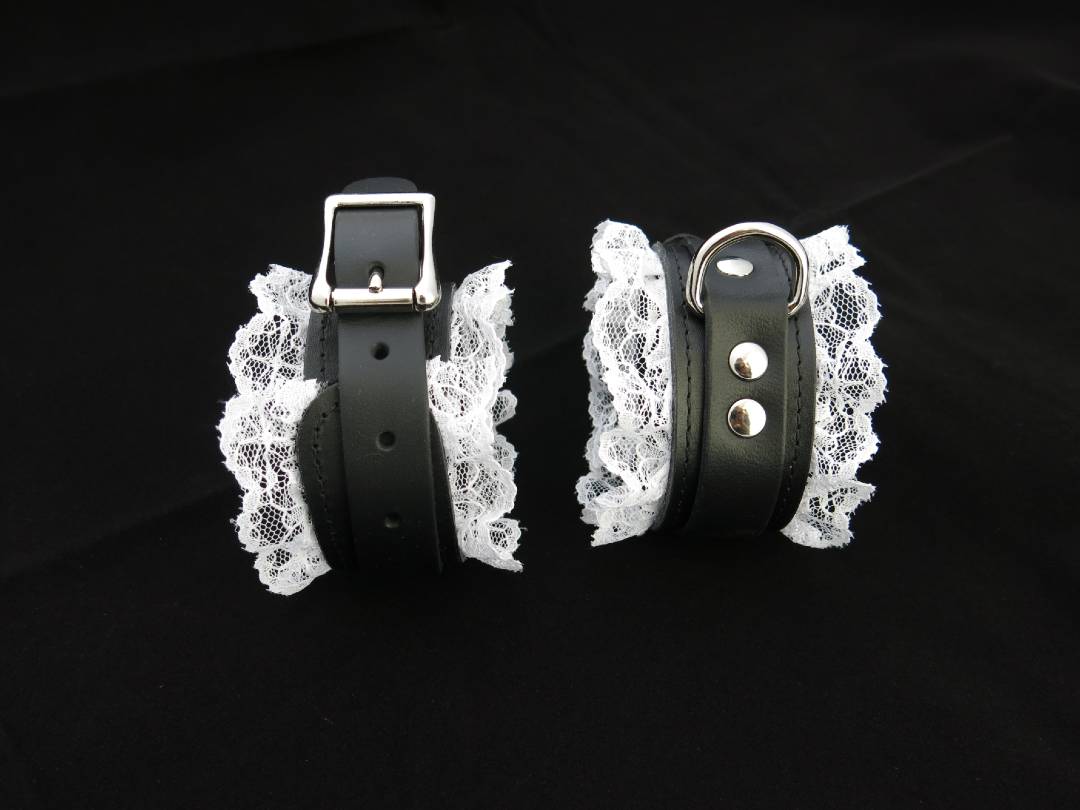 These speciality lace and leather bondage handcuffs come from our signature collection of handcrafted BDSM restraints. The two layers of buffalo leather are soft and flexible so they are easy to take on and off without any hassle. The white lace edging, suede interior and stitched edging offer a sophisticated feminine look.
