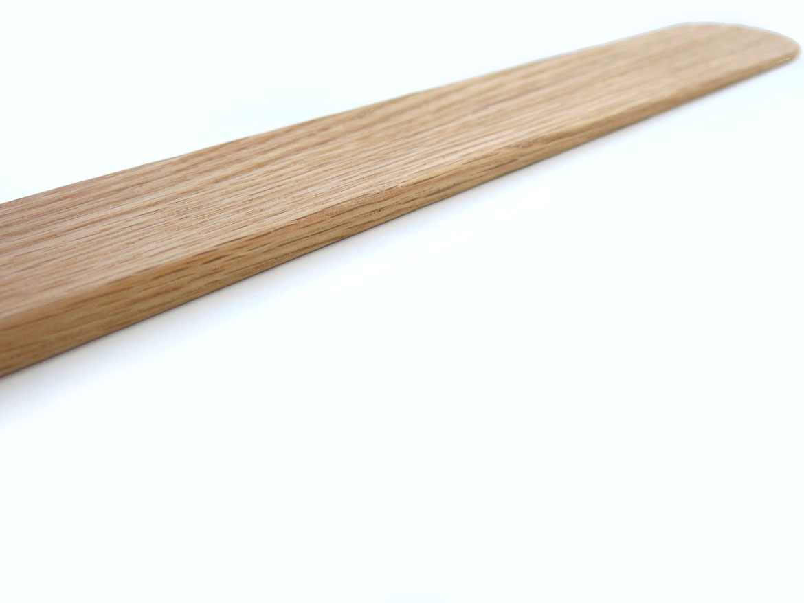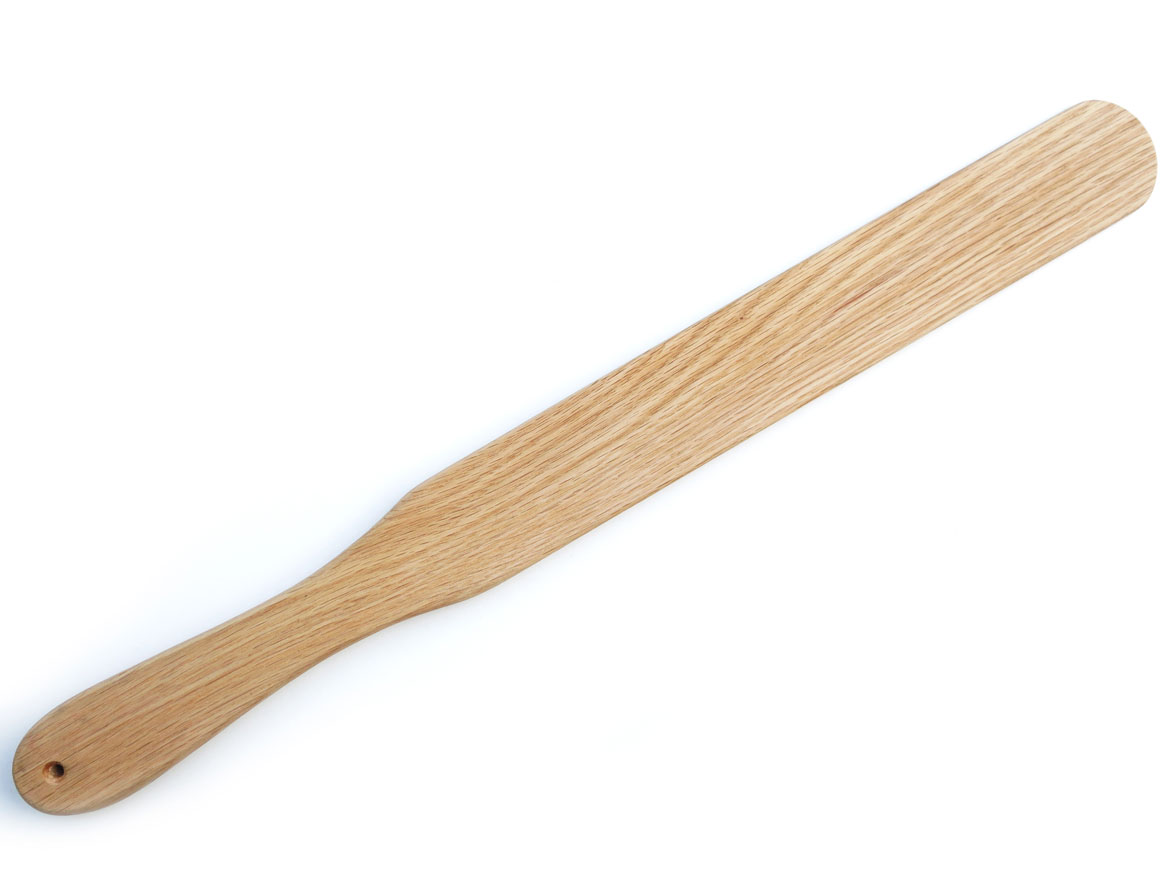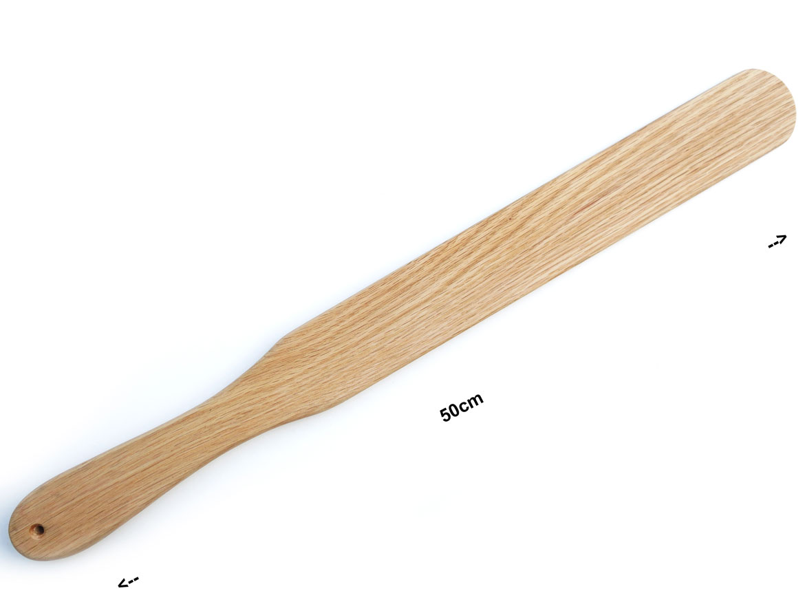 This wooden spanking board is made with a unique tapered design, becoming gradually thinner towards the tip of the paddle. This design delivers a louder smack and gives you more precision. It’s easy to control for different pain levels. Additionally, this paddle has a smooth rounded finish along its edges, giving a soft feel to an otherwise painful toy. Varnished with oil for a smooth finish and protective surface.